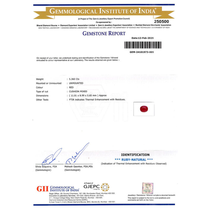 | WEIGHT | 5.36 CARAT |