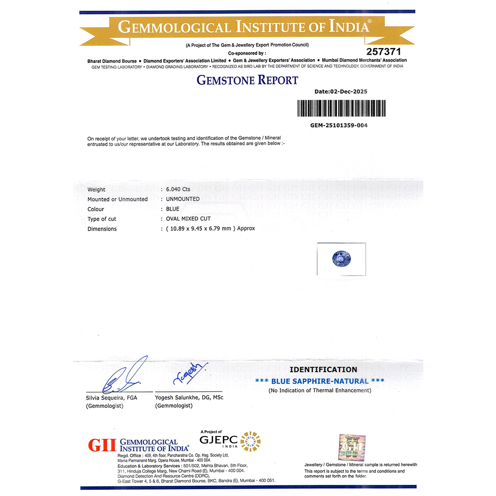 | WEIGHT | 6.04 CARAT |