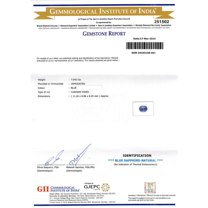 | WEIGHT | 7.04 CARAT |