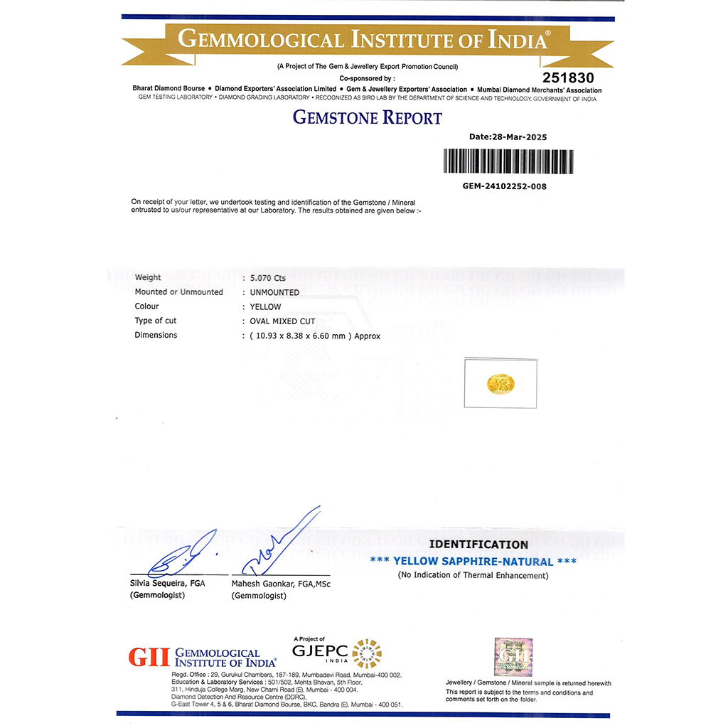 SRILANKAN UNHEATED YELLOW SAPPHIRE